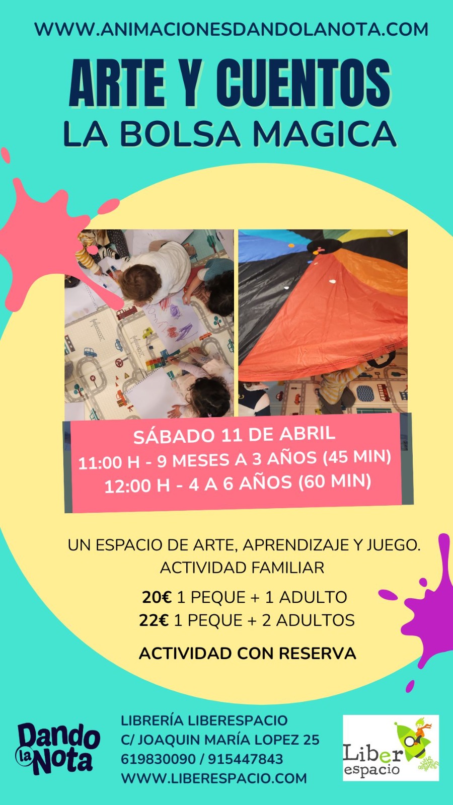 Entrada a sesión La bolsa mágica. 1niño +1 adulto Sesión 12h.