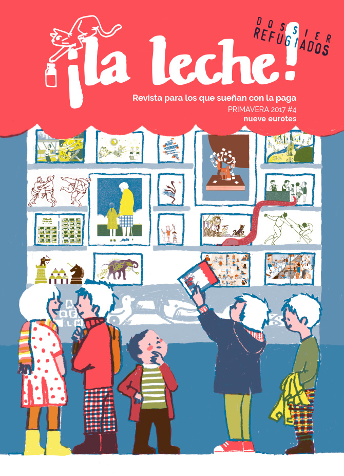 En el cuarto número de ¡La leche! encontrarás: un surtido de herramientas peligrosas, un refugio para la imaginación, miedo irracional hacia las gallinas, tu primer brindis, BRAVO ALPHA NOVEMBER DELTA ECHO ROMEO ALPHA SIERRA , un ogro en una gruta llena de diamantes, un cacharro que vuela con la ayuda del aire, un maestro que quiso cambiar la escuela, cierto animal prehistórico que sigue vivo, noticias inesperadas sobre Ana Frank, un niño que pintaba hileras de humo, el convenio que protege los derechos de los refugiados, qué es un migrante y qué es un refugiado, un hombre al que la guerra le obligó de dejar su casa, 8.771 personas que se ahogaron en el Mediterráneo, arquitectos que piensan en campos de refugiados, pequeños misterios cotidianos, asuntos relacionados con fuentes, tipos y gamas, padres que hablan solos, una niña que sabe jugar al póker, alguna expresión malsonante… y un funesto encuentro con el diablo.